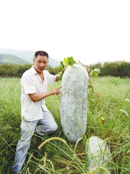 本報(bào)訊 昨天,奉化信義農(nóng)業(yè)科技發(fā)展公司的老邢在農(nóng)莊地里發(fā)現(xiàn)了一個(gè)巨型冬瓜,高106厘米、直徑約50厘米、重達(dá)40.6公斤。據(jù)老邢介紹,今年5月份,他在農(nóng)莊地里種下了冬瓜幼苗,平日里除了澆水比較勤之外,也沒(méi)怎么施肥。這個(gè)大塊頭的發(fā)現(xiàn)令他感到非常意外。