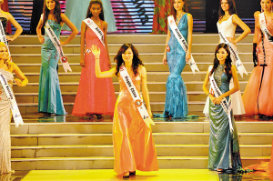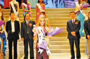 本報訊(記者 李臻) 經(jīng)過幾個月的激烈角逐,在著名主持人王小丫,歌手許志安、羅中旭等名人的助陣下,2008“環(huán)球皇后”昨晚終于在寧波大劇院誕生了。經(jīng)過評選,“中國三甲”、“最佳才藝皇后”、“最佳智慧小姐”、“最高貴皇后”、“最上鏡皇后”、“最佳民族服飾皇后”等一個個單項獎先后出爐。而眾望所歸的俄羅斯小姐、北京小姐和希臘小姐分別獲得冠、亞、季軍。俄羅斯小姐艷壓群芳,經(jīng)歷了重重“考驗”摘取冠軍桂冠。寧波姑娘戴婧斬獲“最具愛心小姐”稱號。