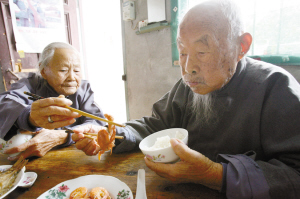 孩子們認為,兩老能一起走過80年,那是因為他們心地純樸、率直、寬容、善良、謙讓,沒有太多的物質、權勢欲望。說起他們的“養(yǎng)老經”,十分平實:葷素不忌,每餐都吃米飯,煙酒不沾,午后小睡一覺,保持潔凈。平時,兩老還去老年協會看電視、打麻將。