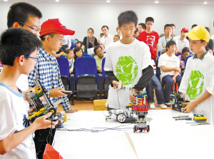▲中小學(xué)生機器人車模比賽