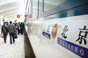 圖為昨天下午乘坐寧波到北京首趟直達(dá)列車的旅客正在進(jìn)站上車。 。ㄓ浾 胡建華 攝)