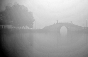昨天,月湖上,霧濛濛雨淅淅,行人渡橋帶煙浮。記者 劉波 王增芳 攝