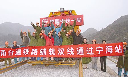 昨天,承擔(dān)甬臺溫鐵路寧波段鋪軌任務(wù)的中鐵一局建設(shè)者在寧海至三門區(qū)間歡慶雙線鋪軌順利通過寧海站。甬臺溫鐵路寧波段是去年9月20日在鄞州邱隘開始鋪軌的,寧波段全長93.3公里。鋪軌結(jié)束后,中鐵一局施工人員將緊鑼密鼓地開始機械化養(yǎng)路、單元軌焊接、應(yīng)力放散與鎖定等作業(yè),為今年9月通車提供可靠保障。
