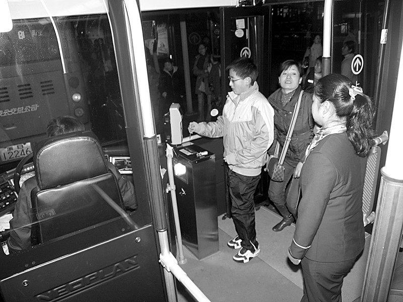 為了給廣大市民提供更貼心、更周到的服務(wù),市公交總公司為“巨無霸”配備了專職乘務(wù)人員。在起點(diǎn)、終點(diǎn),乘務(wù)員將與駕駛員一道,提前三五分鐘開門上客,實(shí)行站立服務(wù),微笑迎送每位乘客,適時(shí)使用隨車耳麥,運(yùn)用普通話和方言及時(shí)向乘客進(jìn)行疏導(dǎo)和提醒服務(wù),耐心解答乘客問詢;維護(hù)乘車秩序,宣傳乘坐規(guī)則,做好上下客疏導(dǎo)工作,主動為老、弱、病、殘、孕和懷抱嬰幼兒乘客提供必要的服務(wù);配合駕駛員做好安全工作,上下客完畢后向駕駛員發(fā)出關(guān)門信號。