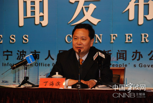 圖為寧波市外經(jīng)貿(mào)局副局長(zhǎng)、新聞發(fā)言人丁海濱在會(huì)上做情況發(fā)布