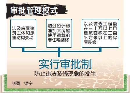 鄭世海說,除了明確禁止的行為外,還設(shè)置了審批管理模式,就是對涉及房屋建筑主體和承重結(jié)構(gòu)變動或者超過設(shè)計標(biāo)準(zhǔn)加大房屋使用荷載的非住宅裝修,以及裝修工程額在三十萬以上且建筑面積在三百平方米以上的房屋裝修,實行審批制,防止違法裝修現(xiàn)象的發(fā)生。東南商報記者張昊