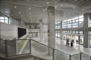 | 新汽車南站為地上五層、地下一層結(jié)構(gòu),總用地面積17200平方米。圖為車站售票大廳。記者 龔國榮 攝 |
