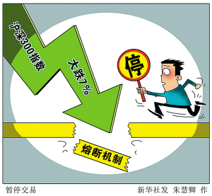 上月4日,滬深證券交易所、中國金融期貨交易所發(fā)布指數(shù)熔斷相關(guān)規(guī)定,選取滬深300指數(shù)作為基準(zhǔn)指數(shù),在當(dāng)日下跌5%時暫停交易15分鐘,下跌7%時暫停全天交易。熔斷機制于今年1月1日起正式實施。