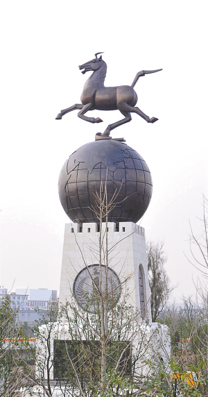 中國優(yōu)秀旅游城市標(biāo)志———“馬踏飛燕”雕塑是工程的一大亮點(diǎn),即將安裝在高速北側(cè)轉(zhuǎn)盤綠地中。雕塑主體由紫銅鍛造的銅馬和地球、花崗巖飾面的烽火臺(tái)和基座四部分組成,其中基座高5.9米,烽火臺(tái)高6.7米,地球造型直徑7米,馬高6.85米。雕塑造型氣勢恢宏、莊重明快。