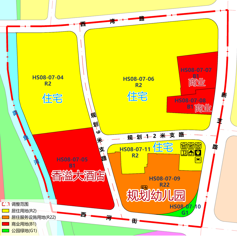 此前,這片區(qū)域除香溢大酒店、住宅小區(qū)外,在香溢大酒店東側(cè)、新芝路與西河街交叉口地塊內(nèi)規(guī)劃了一處綠地和一所12班幼兒園,還有一條東西向、12米寬的支路。