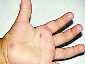 導(dǎo)讀:今年3月上旬,安徽阜陽幾家醫(yī)院陸續(xù)收治了以發(fā)熱伴口腔、手足臀部皮疹為主的疾病患兒。經(jīng)衛(wèi)生部調(diào)查檢測,確定該病為腸道病毒EV71感染。截至5月1日,當(dāng)?shù)乩塾媹蟾?496例感染患兒,22人死亡。目前,廣東、湖北、湖南、陜西等地均發(fā)現(xiàn)疫情。