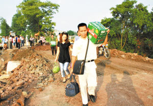 本報(bào)韶關(guān)訊 (記者卜瑜 通訊員朱祖純攝影報(bào)道) 被持續(xù)強(qiáng)降雨導(dǎo)致的洪水沖垮的南雄X340線斷橋,經(jīng)過(guò)當(dāng)?shù)夭块T緊急搶救,晝夜奮戰(zhàn)40小時(shí),于6月20日下午6時(shí)在“斷橋”原處順利搶通“應(yīng)急橋”,使一度造成上萬(wàn)群眾出行受阻問題得到緩解。 |