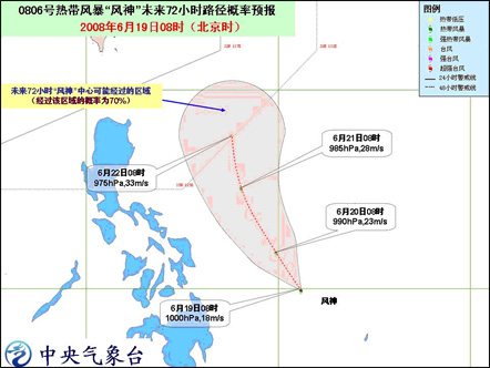 今年第6號(hào)熱帶風(fēng)暴“風(fēng)神”(FENGSHEN)今天上午在菲律賓以東洋面生成,上午8時(shí)風(fēng)暴中心位于菲律賓馬尼拉東南方向大約1220公里的西北太平洋洋面上,就是北緯9.9度、東經(jīng)131.2度,中心附近最大風(fēng)力有8級(jí)(18米/秒)。