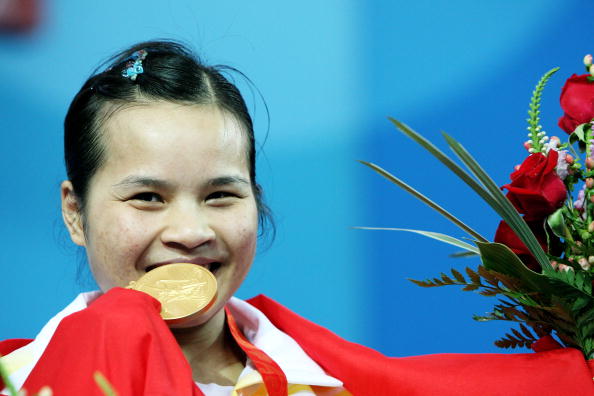 8月9日,2008年北京奧運(yùn)女舉48公斤級(jí)比賽結(jié)束。陳燮霞為中國摘得首金。圖為陳燮霞。 |