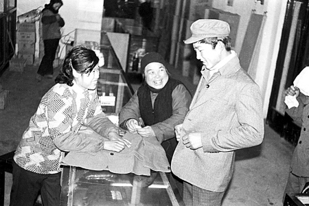 對外開放不斷改變著寧波人傳統(tǒng)的生活方式、風(fēng)俗習(xí)慣,圖為一青年正在商店里試穿西裝。(俞丹樺 攝)