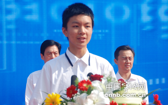 寧波市首屆網(wǎng)絡(luò)文化節(jié)開幕現(xiàn)場,學生代表發(fā)表倡議書。