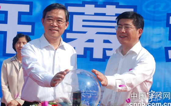 寧波市首屆網(wǎng)絡(luò)文化節(jié)開幕現(xiàn)場,寧波市委常委、宣傳部長宋偉,副市長成岳沖同時按下激光啟動球。