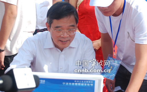 寧波市首屆網(wǎng)絡(luò)文化節(jié)開幕現(xiàn)場,寧波市委常委、宣傳部長宋偉在網(wǎng)上簽名。