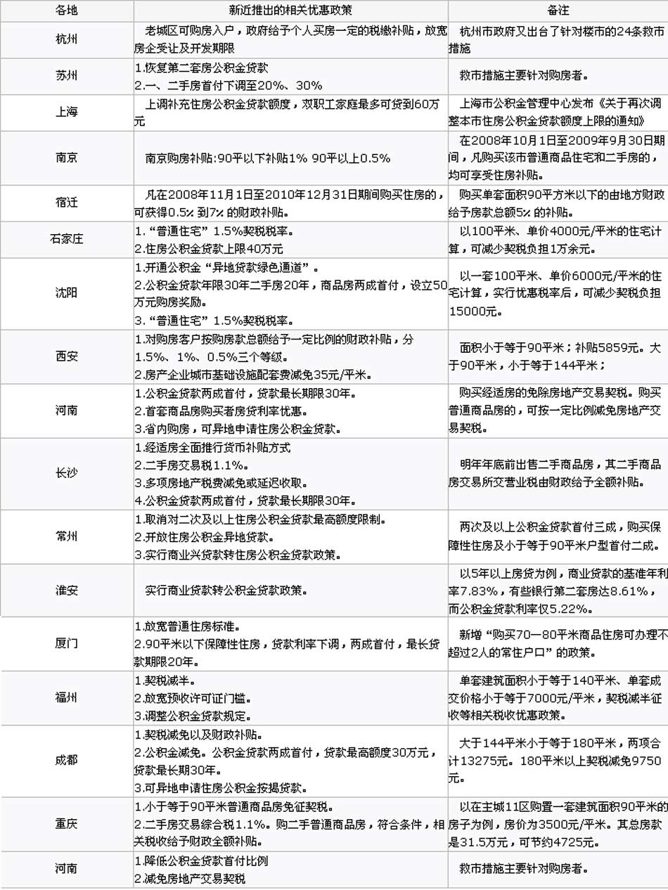 10月 18城市出臺購房優(yōu)惠政策