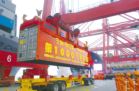 目前,全世界年吞吐量超過千萬標箱的港口為數(shù)不多,國內只有3個。這意味著,寧波—舟山港成為國內第4個千萬等級的世界大港,有望躋身世界前十強。
