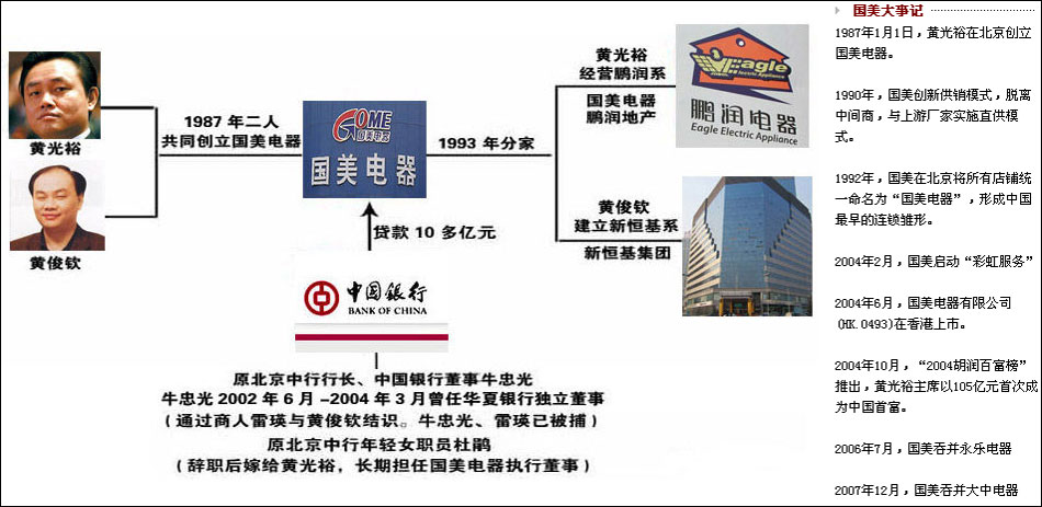 黃光裕1969年生于汕頭。17歲隨其兄弟到京,貸款開始了家電經(jīng)銷,創(chuàng)立國(guó)美。1999年,黃光裕創(chuàng)辦鵬潤(rùn)投資,在幕后資本運(yùn)作,并購(gòu)涉及大中、永樂、三聯(lián)商社等。黃光裕三度成為 胡潤(rùn)百富榜 首富。早在2006年,黃光裕兄弟就曾卷入“原罪”是非。