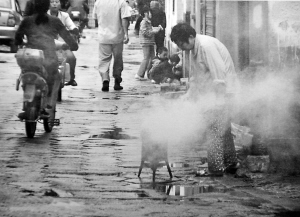 當(dāng)年市民用煤餅爐生火做飯(資料圖片)。記者 劉波 翻拍