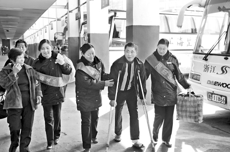 打電話的人叫單漢定,50多歲,慈溪人。因?yàn)殡p腿截肢,行動(dòng)非常不便。為了申請(qǐng)一項(xiàng)戒煙專利,他頻繁往返慈溪和寧波。3561服務(wù)班的服務(wù)員至今還記得他第一次來車站的情景。當(dāng)時(shí),單漢定的朋友打電話到車站,描述了他的體貌特征后,請(qǐng)車站的工作人員去接車并安排轉(zhuǎn)車。