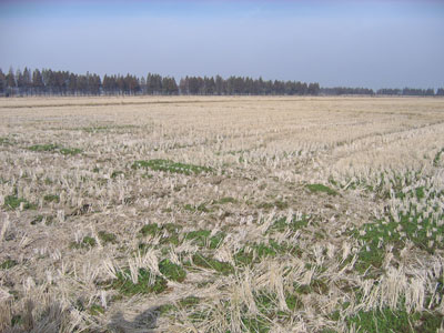 | 初冬,有機(jī)米生長的稻田 |