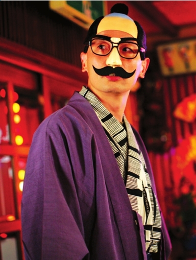 這段戲份發(fā)生在北海道的一間小酒館,穿著和服的葛優(yōu)被安上了一個(gè)塑料鼻子,鼻子上架著一副黑框眼鏡和兩道濃眉,下面還有兩撇八字胡,一皺鼻子就能連動(dòng),逗得舒淇哭笑不得。華誼兄弟透露,葛優(yōu)在片中的鬼馬表現(xiàn)不止這一處。