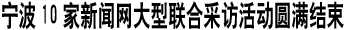 本次大采訪活動(dòng)是寧波網(wǎng)絡(luò)媒體第一次大型聯(lián)合采訪。由中國寧波網(wǎng)聯(lián)合廣播在線、慈溪新聞網(wǎng)、余姚新聞網(wǎng)、奉化新聞網(wǎng)、鎮(zhèn)海新聞網(wǎng)、北侖新聞網(wǎng)、寧海新聞網(wǎng)、象山港網(wǎng)、鄞州新聞網(wǎng)舉辦。時(shí)間跨度預(yù)計(jì)兩個(gè)月。