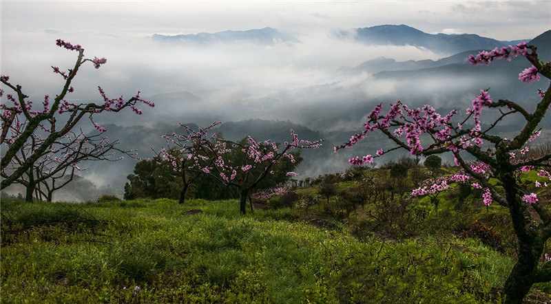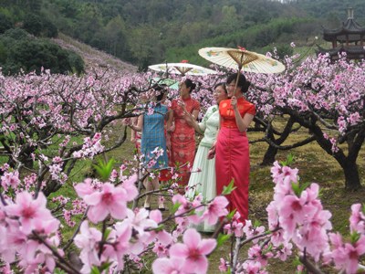 每逢桃花盛開,這里總有翰墨飄香,即使是一萬卷畫、一萬冊書、一萬首詩,也不夠詮釋溪口古鎮(zhèn)之春和新建桃林之美。