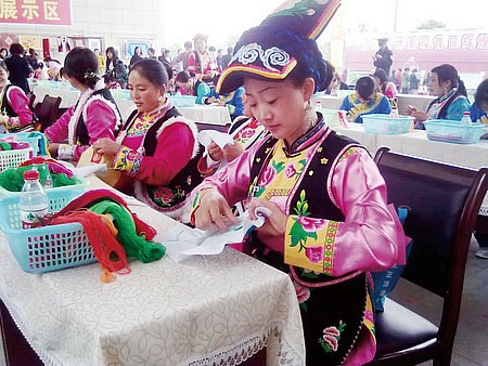 正值桃花爛漫時,引得一群繡娘三五結伴來到新建村的世界桃街共繡桃花,陶醉在粉紅的花海,用絲線記錄別樣的春。