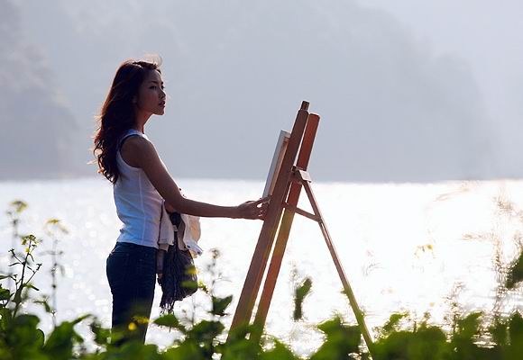 新建漫山的桃花,撐遠了少女們頭頂上藍湛湛的天空,她們信步芳叢展一身虹裝,云胡不喜,奢華不求。