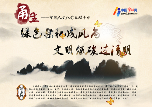 中國寧波網(wǎng)4月10日訊(記者祝欣祎)中國寧波網(wǎng)推出的國內(nèi)首個人文紀(jì)念互動平臺《甬生》,自4月1日上線以來,短短7天時間推出一系列上線活動,在寧波乃至全國引起強(qiáng)烈反響。《寧波日報》、《寧波晚報》、《東南商報》等媒體紛紛轉(zhuǎn)載報道并發(fā)表評論:“甬生”是中國首個網(wǎng)上人文紀(jì)念互動平臺,告別傳統(tǒng)的思念方式,充分體現(xiàn)綠色祭祀的科學(xué)理念……上線期間“甬生”日均訪問量達(dá)5萬人次,吸引了大量網(wǎng)友互動,并將“甬生”征文活動(活動地址:http://www.dkmn.cn/ys/system/2015/04/07/008295082.shtml)再一次推向高潮。