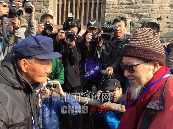 在低鳴的號角聲中,蔣老飽噙淚水,與臺兒莊戰(zhàn)役的老兵邵經(jīng)斗握手相擁,101歲的邵老先生如今依舊充滿斗志和熱血:“如果日本鬼子不承認戰(zhàn)爭失敗,給我一桿槍,我再去打他們!”此情此景,多么讓人動容。