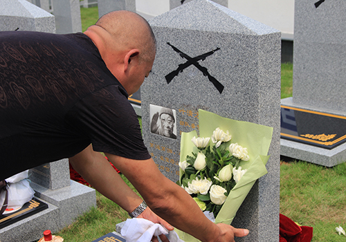 儀式進(jìn)行到第二主題環(huán)節(jié),在激昂的沖鋒號聲中,九名抗戰(zhàn)老兵的骨灰在專業(yè)殯葬禮儀服務(wù)團隊的護(hù)送下進(jìn)入中心廣場,在致敬四百萬英烈后緩緩步入老兵墓區(qū),揭開墓碑上圣潔的紅布、祭撒下壯烈的抗戰(zhàn)酒,完成了他們生命中最后的集結(jié)。在浙東抗戰(zhàn)老兵紀(jì)念園這一方山水之間,青山鑄塚,埋骨嘉陵,留待后人追憶與悼念。