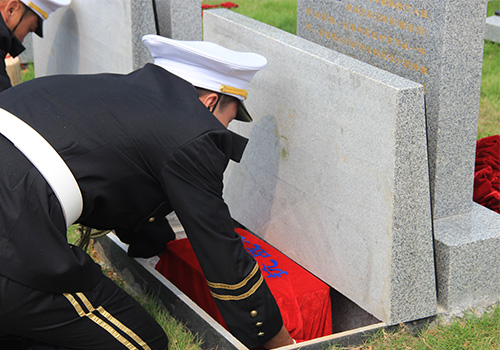 圖為老兵骨灰盒入墓