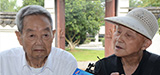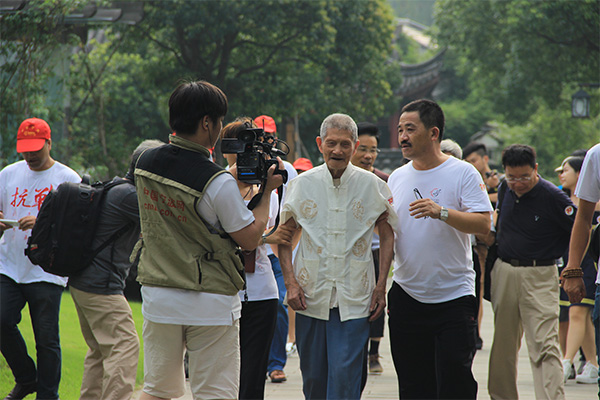 抗戰(zhàn)老兵與青少年同游象山影視城講抗戰(zhàn)故事