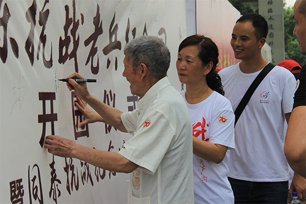老兵在開園儀式上簽字