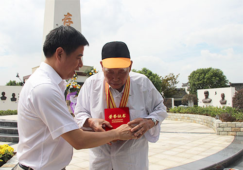 中國寧波網(wǎng)訊(實習記者潘楠希)9月18日上午10時,“甬耀銀輝”——紀念抗戰(zhàn)勝利70周年“同泰杯”墓志銘征文活動頒獎儀式在同泰嘉陵·浙東抗戰(zhàn)老兵紀念園舉行,本次活動由中共寧波市委老干部局主辦,寧波同泰嘉陵投資有限公司、寧波老年報、寧波市老干部活動中心聯(lián)合承辦。市委組織部副部長、老干部局局長俞小勛,市委老干部局副局長張建國,市委老干部局活動教育處處長蘇金錐,寧波市“銀輝”志愿者聯(lián)合會秘書長、市老干部詩詞協(xié)會會長陳洪勛以及寧波詩協(xié)董景云,寧波康樂老年報副總編丁曉紅、市老干部活動中心副主任戴慕軍等嘉賓出席本次活動。