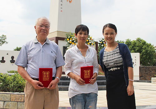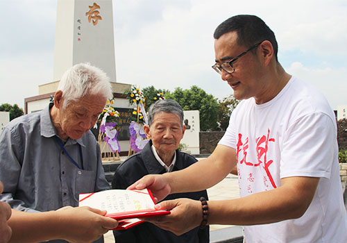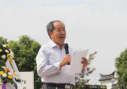 活動首先由沙力先生致辭,隨后,市老干部詩詞協(xié)會會長陳洪勛宣布墓志銘征文大賽的評審標準和評選結果,翁紹初獲大賽一等獎,金卉、馮永之、吳振杰獲二等獎,翁藝佳、陳鴻培、鄭已揚等6人獲三等獎,獲得紀念獎、入圍獎的有張印珍、徐海山、阮宜樂、葉前華等。市委組織部副部長、老干部局局長俞小勛、同泰嘉陵董事長沙力、老年報副總編丁曉紅、市委老干部局副局長張建國分別為一、二、三等獎及入圍獎、紀念獎頒獎。在俞局長講話中,頒獎活動接近尾聲,最后大家在紀念碑前集體合影留念。