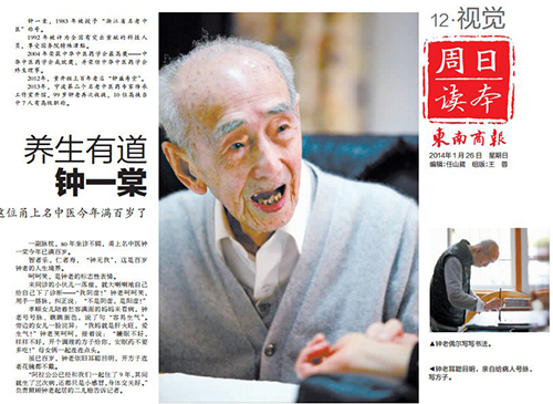 2014年1月26日,《東南商報》報道百歲鐘一棠的養(yǎng)生之道