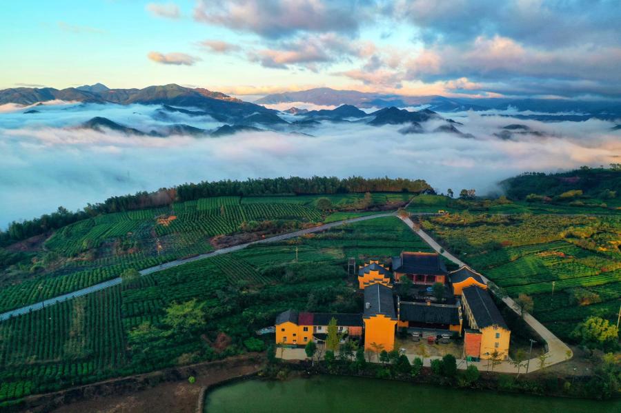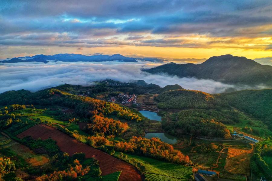 深秋時節(jié)天氣漸涼,寧海桑洲也逐步進入云海最佳觀賞季。有些涼意的清晨,一輪紅日從云海中緩緩向上升起,金光鋪灑在茫茫云海之上,甚是壯觀。(記者 王鵬 通訊員 周耀輝 攝)