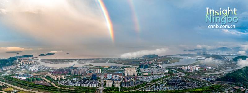 “彩霞柔幔前川盡,虹耀長空掛玉云。”昨天(23日)傍晚,經(jīng)歷暴雨后的象山大目灣新城,雙彩虹呈現(xiàn)在天空之上,美麗的海濱城市,風光更加動人。(鄭士偉 徐能 攝)