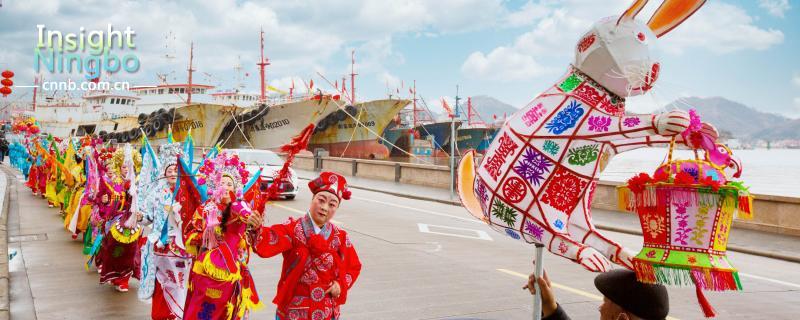 春節(jié)期間,象山石浦鎮(zhèn)熱鬧非凡,充滿濃郁地方特色的民俗表演爭相上演。魚燈隊(duì)、馬燈隊(duì)、八獸燈隊(duì)和辣螺姑娘隊(duì),或戴上臉譜、穿上盛裝,或手持魚燈、載歌載舞,吸引了四方游客駐足觀看、也為新春添足了年味。謝定會(huì) 攝